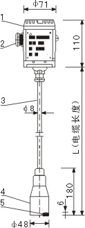 投入式 液位變送器 結構類型 AK-LC纜式液位變送器 AK-LR桿式液位變送器 AK-LD直裝式液位變送器 AK-LC 外形尺寸 AK-LC纜式液位變送器 (普通形式連接) 1、變送器外殼 2、信號線纜接頭 3、傳感器電